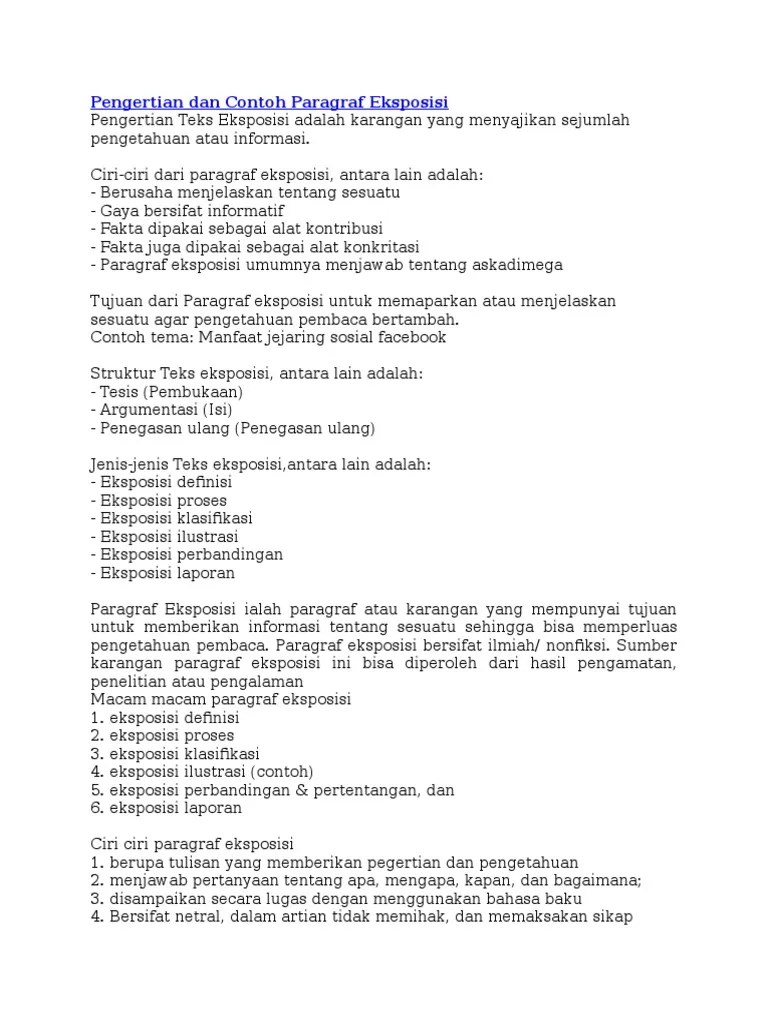 Contoh teks eksposisi perbandingan pengertian dan contoh Berikut contoh paragraf eksposisi perbandingan. Contoh paragraf eksposisi perbandingan / pertentangan paragraf eksposisi. Berbeda dengan paragraph eksposisi perbandingan, paragraph ini menerangkan . Ketahui contoh paragraf eksposisi dalam artikel berikut ini.